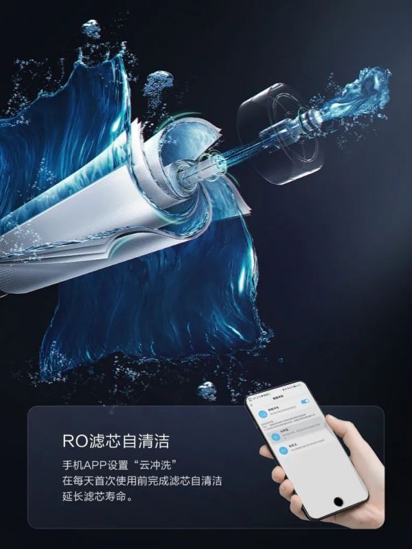 同时,手机APP设置“云冲洗”,即可在每天首次使用前完成滤芯自清洗,延长滤芯寿命,进一步降低换芯频次。