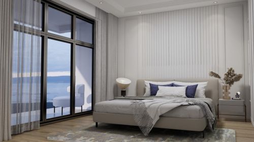 造型的简约与细腻温润的视觉效果,带着静匿点缀卧室空间。木质地板的应用,搭配格栅墙面处理,厚重的品质,考究的用料,纹路的优雅与精致,从每一个细节诉说着舒适的空间质感。