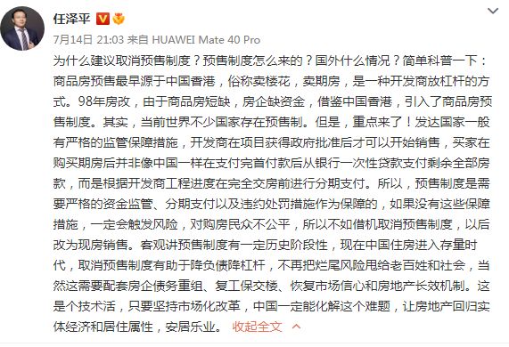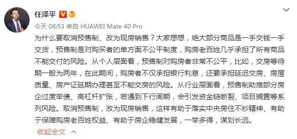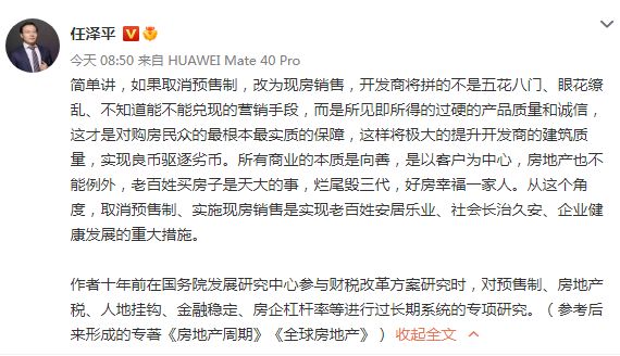 任泽平连发3条微博评“预售制”:对购房者非常不公平!到底该怎么改?专家们观点差异很大