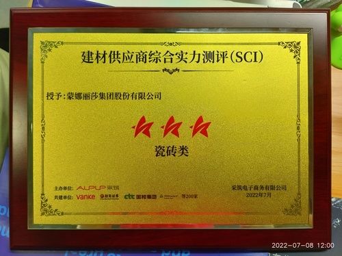 7月5日,“4力破局 逆势增长”第八届全球深商大会暨采筑联合者大会4在深圳顺利召开,现场重磅发布2022供应商综合指数SCI测评结果,蒙娜丽莎在本次SCI测评中获得“三星供应商”测评结果,获全场数百位采购商、供应商、行业协会代表及领域专家点赞认可。