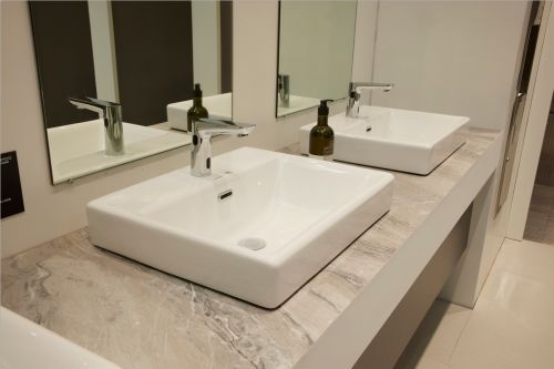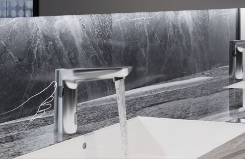 双窗口感应面盆龙头+艺术盆:健康免触,简约至美
