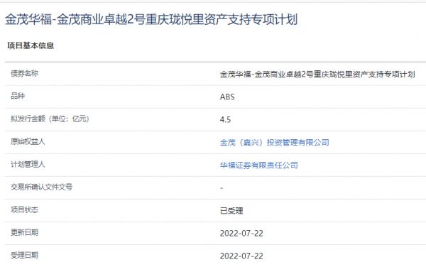 金茂华福-金茂商业卓越2号重庆珑悦里4.5亿元资产支持ABS获上交所受理