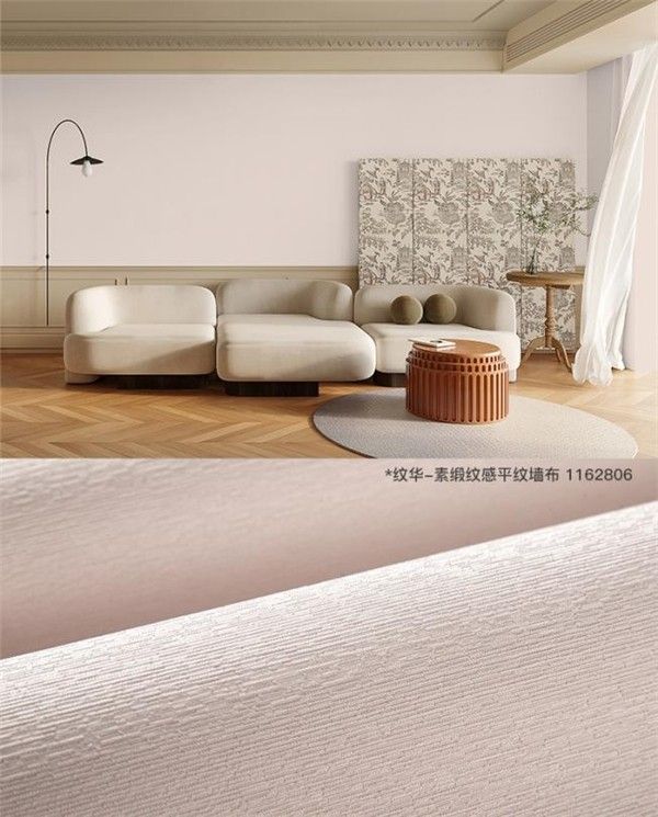 结束一天疲惫的工作,最想要的就是一个温馨的小家!纹华-素缎纹感平纹墙布是汇明艺术墙布十周年全新产品体系中代表时尚多彩的产品,色域宽、色系全,温柔且治愈。