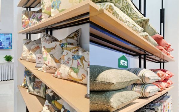在窗帘抱枕展示区, La Belle Vie(贝拉丽舍)也一如既往为大家带来大师级的作品,将家的温馨与时尚格调相融合,打造出别样感官体验。