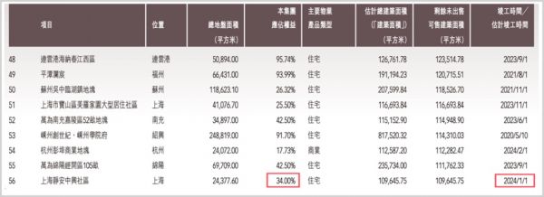 ▲融信中国资产权益情况