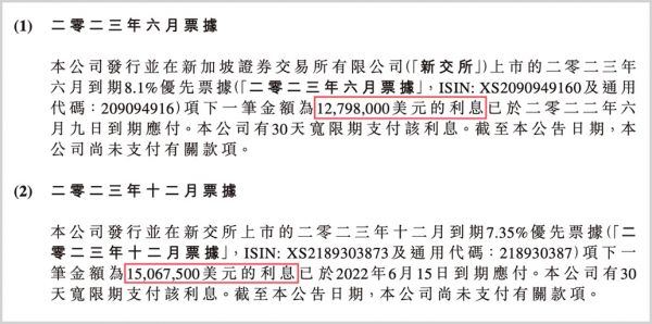 进入2022年,欧宗洪执掌的融信迎来多事之秋,境内外债券相继暴雷。7月10日,公司公开表示,两笔境外债共计2786.55万美元(1.88亿元)的利息未按时支付。