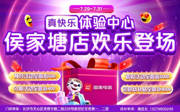 为热烈庆祝侯家塘店正式开启试营业,湖南国美联合厂家开启开业钜惠,除了带给消费者不一样的场景体验,在产品价格上,也带给消费者更多的福利,给消费者带来一场新奇舒适的购物体验!比如:消费者预存20元可以抵200元,预存50元抵500元;依托厂商专属组合套购至高省5000元;银行分期至高补400元;办联通、移动、电信5G套餐最高领8000元家电补贴。