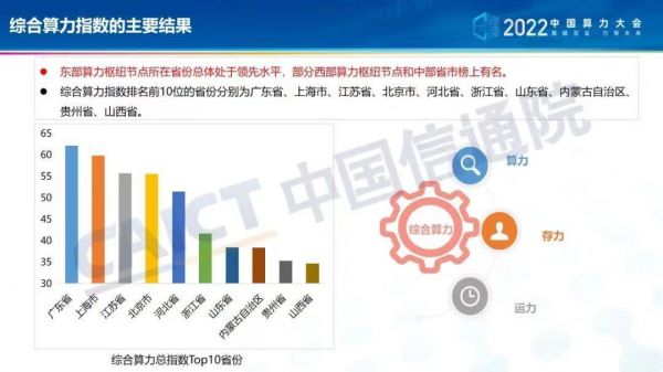 7月30日,2022中国算力大会在山东济南开幕。本次大会发布我国首个《中国综合算力指数》,对各地区算力、数据存储和传输能力进行了全面评估。结果显示,广东省、上海市、江苏省、北京市、河北省、浙江省、山东省、内蒙古自治区、贵州省、山西省位列前十。