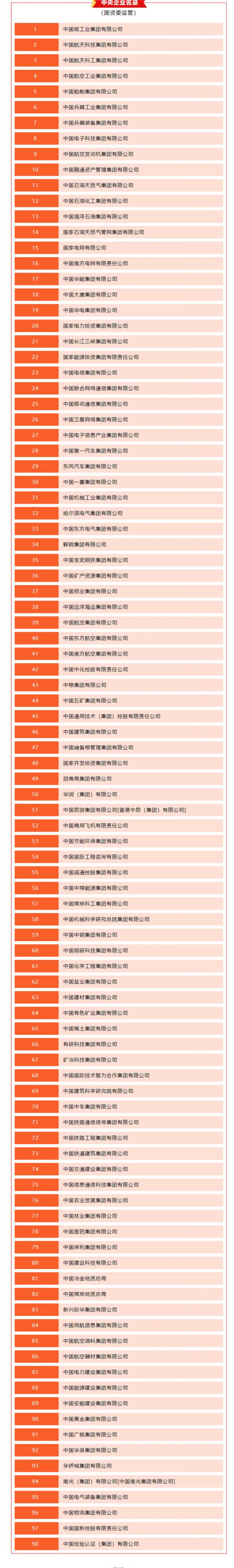 日前,国务院国资委网站公布最新中央企业名录,新组建的中国矿产资源集团有限公司排在第36位,位于中国宝武钢铁集团有限公司和中国铝业(601600)集团有限公司之间。目前国务院国资委监管的央企总数为98家。详细如下: