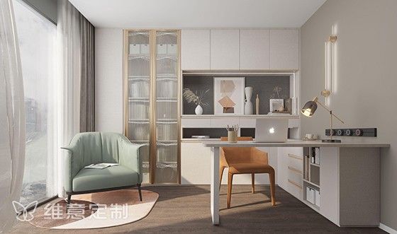 除了成家,我们也可以成为梦想家。你可以是穿搭家,我可以是设计家,不是我让你变得幸福,而是我们一起变得幸福。—半围合书房,透亮敞阔。