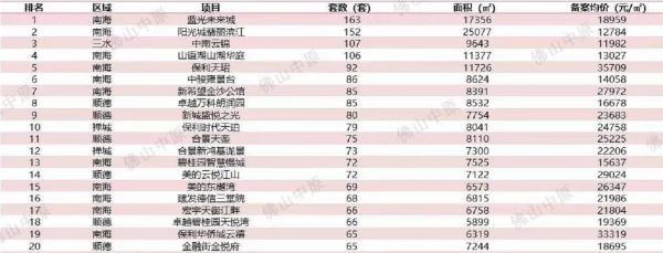 2022年7月佛山新盘网签TOP20 数据来源:佛山中原地产