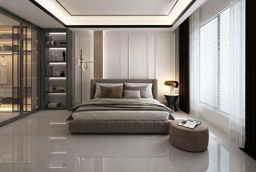 运用大量的瓷砖和金属元素,打造出温柔舒适的卧室空间。【摩卡云灰】,以自研0.5mm连纹密拼技术、卓越的品质和极高的颜值,实现“空间无限连纹”的装饰效果,演绎个性时尚的空间氛围,凸显整体高贵优雅的生活情调,赋予空间无限想象。