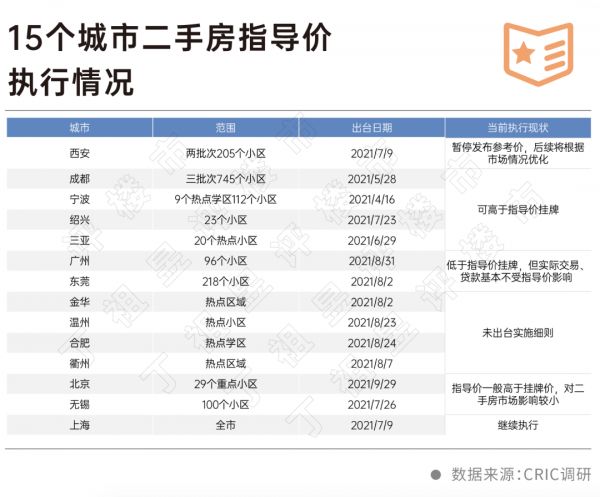 截至2021年底,全国共有15个城市建立二手房指导价发布机制。截至目前,已有13个城市二手房指导价制度实质性取消。这13个城市包括:西安、成都、宁波、绍兴、三亚、广州、东莞、金华、温州、合肥、衢州、北京和无锡。