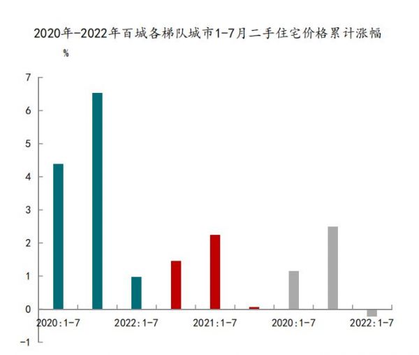 2022年1-7月一二线城市二手住宅价格累计上涨 三四线城市累计下跌