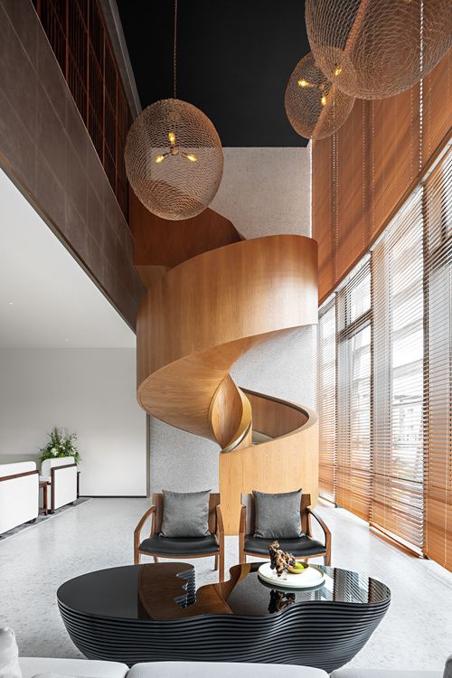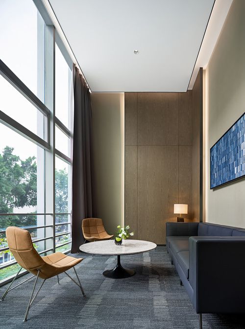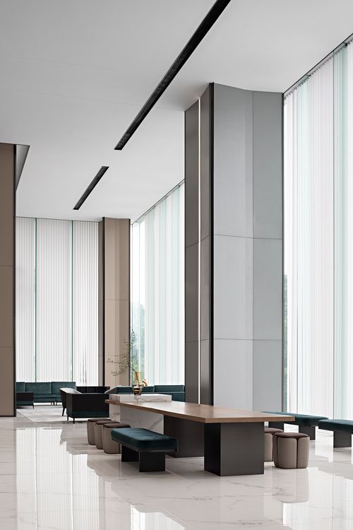 集合了1000㎡文创特色街区、生态办公、配套宿舍空间、休闲广场等于一体的凤凰智谷大厦,以周边六大公园及铁仔山生态绿色为背景,引入碧桂园绿色垂直技术,打造城市中的绿谷社区,内部更规划有热带庭院、水景天窗、休闲台阶等多个景观节点。其办公楼空间陈设软装由SEPD圣易文设计担纲,“人文节制,共生未来”的理念于此自然呈露,营造出自然静宁且饱含时尚气息的现代诗意空间。