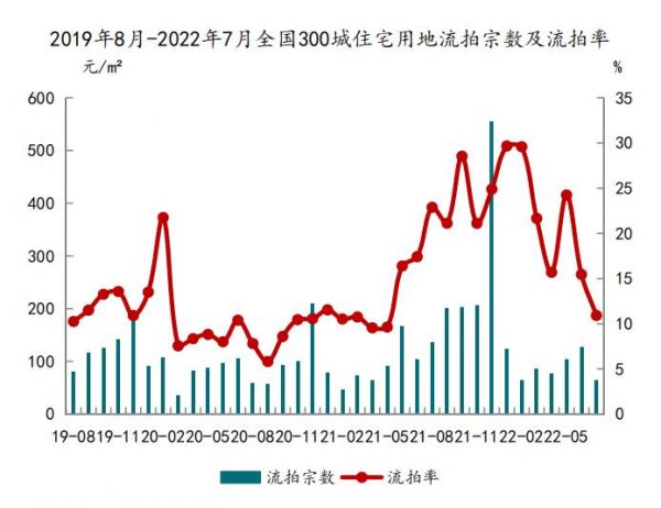 2022年1-7月共流拍地块643宗 单7月流拍地块64宗