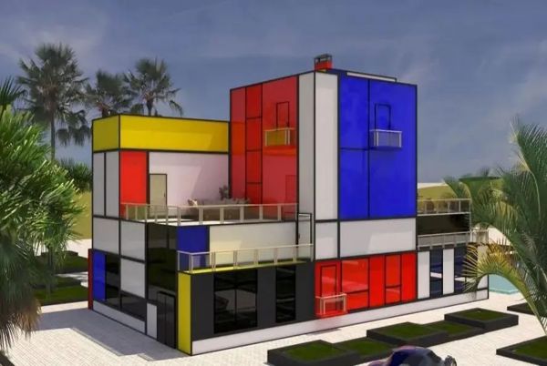蒙德里安的绘画虽然图案有限而抽象,却象征着构成自然的原始力量。纯粹的形体,简洁的色块抽象美学观念从艺术界到时尚界,再到建筑与室内领域为空间营造出极富感染力的艺术意境。