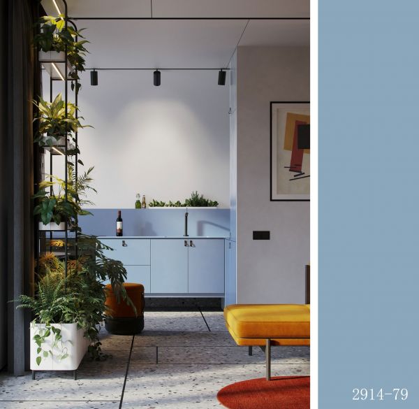 将蒙德里安元素以小面积点缀的形式套用在三原色空间中,降低大面积空间中三原色的饱和度,巧妙将点缀色以高饱和度形式呈现,以简单的点、线、面语言营造出丰富的空间面貌,形成有趣的节奏。