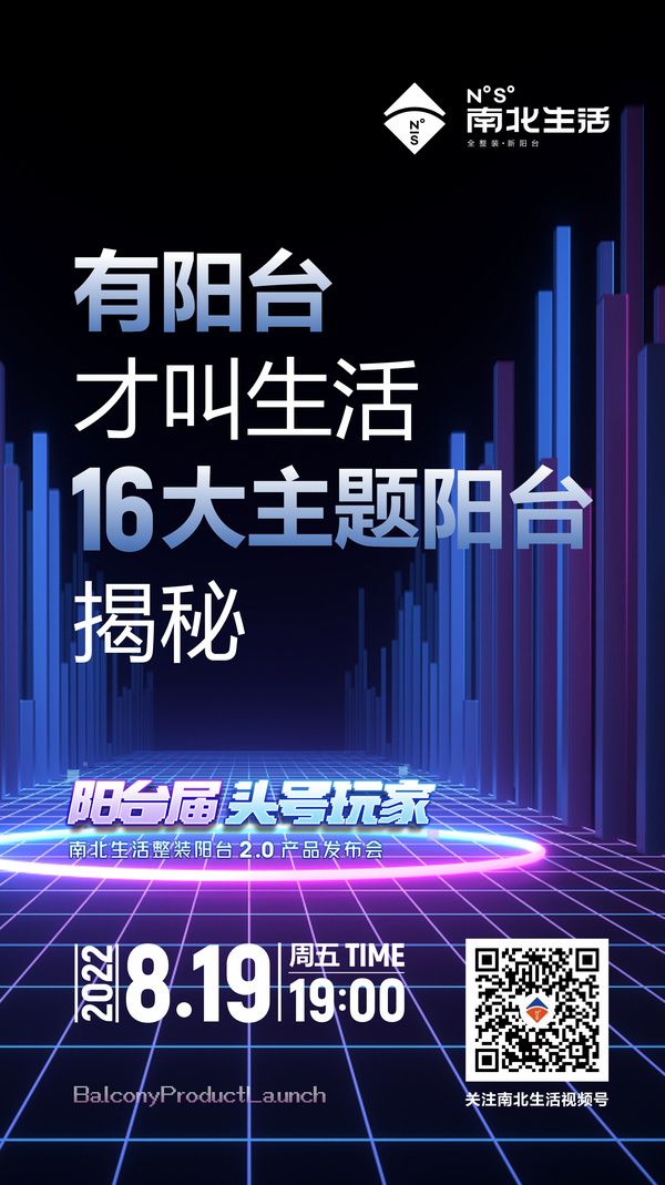 8月19日19:00点,南北生活2.0新品发布会,我们将对16个阳台主题空间进行展示和阐述。你想要的阳台生活,南北生活都能为你实现。