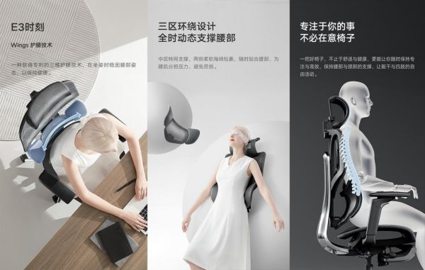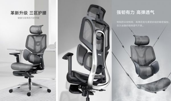 在这样的基础之上,黑白调结合人体工学技术,研发出了E3三区护腰人体工学椅。