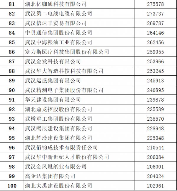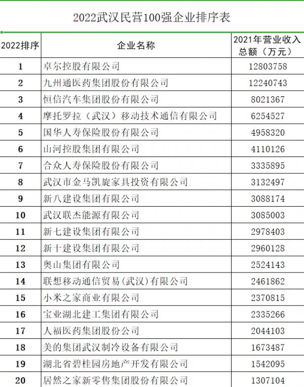 2022武汉民企100强公布