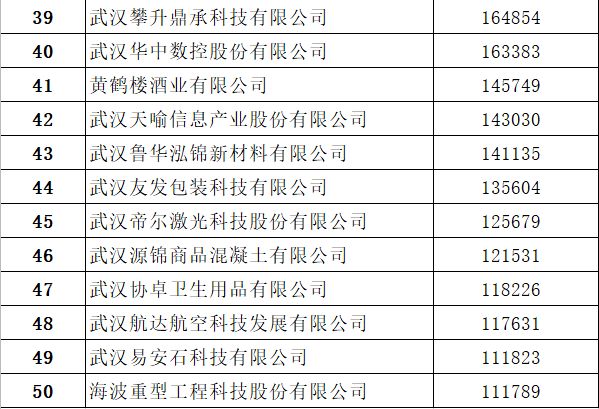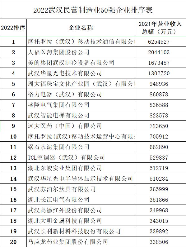 2022武汉民营制造业企业50强