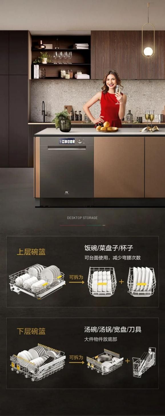 MK壹号作品系列M9洗碗机颠覆传统洗碗机固定式碗篮,将三层碗篮合理模块化分区,可拆卸手提取用,仿佛“魔方”般灵活多变。