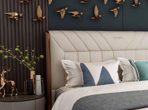 如果你的卧室是轻装修,轻奢风格的东宝软床会适合你。轻奢介于奢华与简约之间,是一种轻度奢侈的家居风格,通常使用真皮、大理石、玻璃、金属等材质体现奢侈,可以提升卧室的高级感。