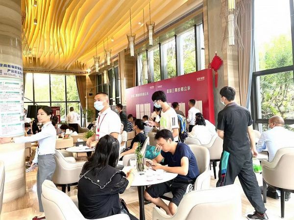 8月20日,昆山限购放开的第一个周六,界面新闻探访花桥多个售楼中心,以象屿都城嘉园最为热闹,不到下午3点,项目来访人数已经超过200组,样板间也是人来人往。