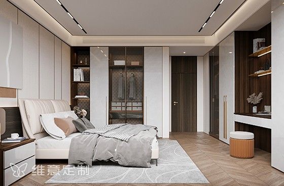 更连贯的空间界面呈现,从入门开始,到柜,所见即为一体,既能保持整体视觉上的简洁与协调,又能赋予空间大气连贯的高级气场。