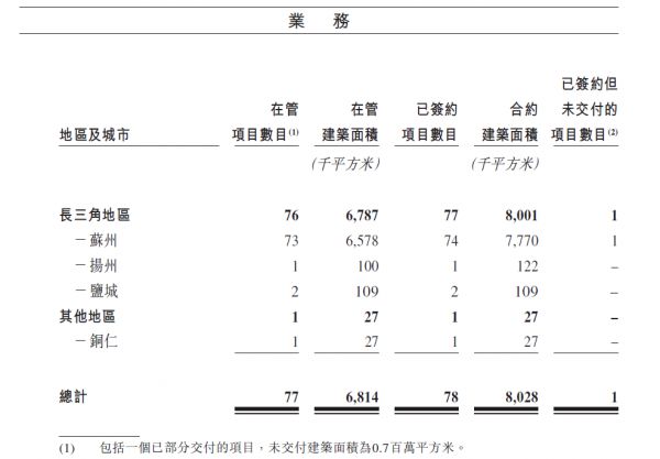 资料显示,截至2022年4月30日,苏新服务共订约为78个项目提供公建项目管理服务、住宅物业管理服务和商业物业管理服务,总合约建筑面积为8.0百万平方米,其中,77个项目的在管总建筑面积超过6.8百万平方米。