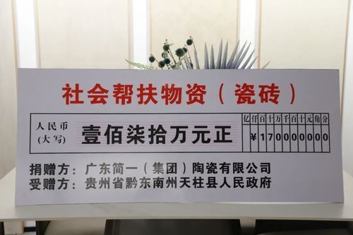 简一作为佛山陶瓷捐赠至天柱县