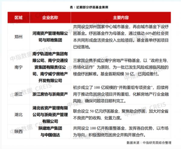 证券时报e公司讯,在中央政治局会议首次提出“保交楼、稳民生”的背景下,近期以来,多地政府牵头,联动地方AMC、地方国企等多种形式的国有资本,共同成立房地产纾困基金。据中指研究院统计,今年以来,包括郑州、南宁、浙江、湖北、陕西等省市明确设立纾困基金,稳定房地产市场发展。