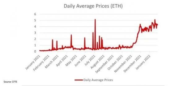 2022年,元宇宙土地的交易日均价超过5 ETH(以太坊,加密货币的一种),超过18000美元,最高涨到了40000美元以上。