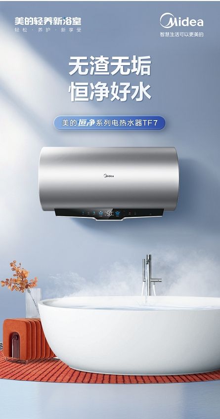 电子镁棒无渣无垢黑科技 美的恒净电热水器TF7 震撼上市