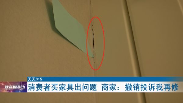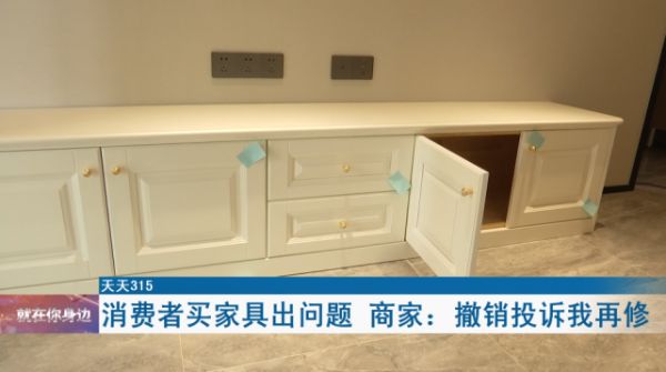 李女士说,自己找到巢美家居定制协调售后事宜,由于对方迟迟没有维修,自己一气之下便将问题反映到了城市留言板。结果商家反倒要求她把城市留言板的留言撤销了之后,才愿意维修。“他要我把城市留言板撤销了之后,才给我维修,但是我不愿意撤销。我就是为了一个理字。明明是他自己的质量问题,我是通过正常渠道去反映问题,他凭什么要求我撤销?”
