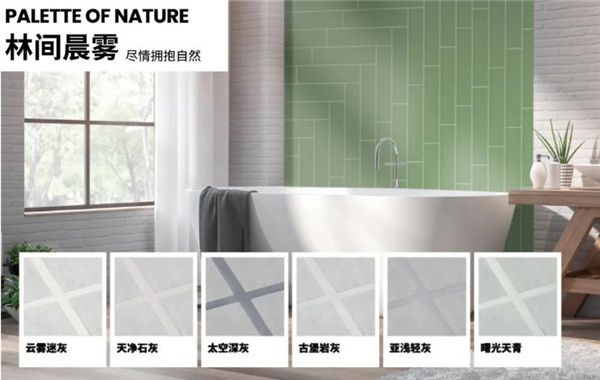 德高美缝“林间清晨”色盘,以云雾迷灰、天净石灰、太空深灰、古堡岩灰、亚浅轻灰、曙光天青带来的静谧自如,让您尽享舒适放松时刻。