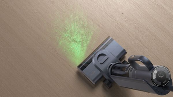 80000转/分高速马达带来12000Pa真空劲吸,吸入功率高达60AW,毛发灰尘根本不在话下,就算是猫爪上带出来的猫砂小颗粒也能轻松吸走。与此同时,YOGA Life V7配备了双金属锯齿,可将毛发进行切割,直接吸入固体收集器,避免毛发缠绕,清理起来更加高效。它的激光探污模块则能够帮助发现人眼难以发现的毛发和细小灰尘,屋内清洁更干净。