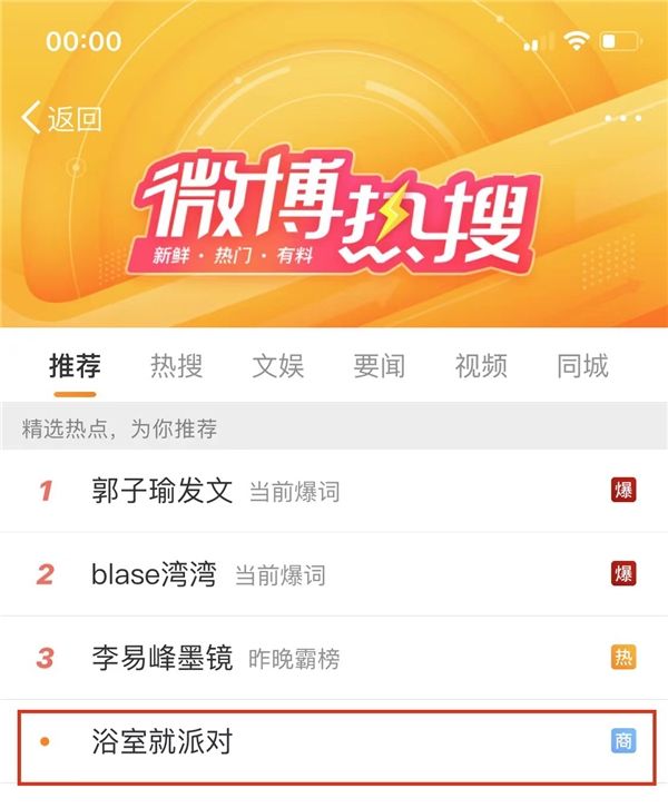 事件当天,#浴室就派对#的话题瞬间登上微博热搜。