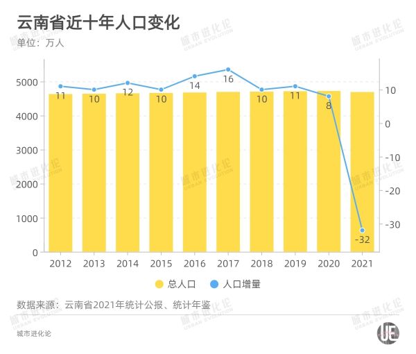 这也是过去十年来,云南人口总量首次出现负增长。