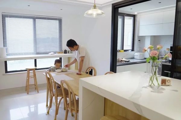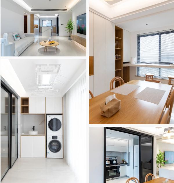来自浙江的全女士偏爱极简的装修风格,因此房屋整体采用了白色原木风的设计,大面积白色的运用,极大地增加了空间感,极简的家具也能保证了小孩有更大的活动空间。