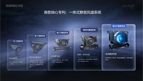 再如森歌独创的一体式静音风道系统,经过了5次产品升级更迭:从最初的深U集烟仓的易漏油问题得到解决后升级到双向圆风道,解决噪音过大的问题后过渡到简易一体式风道,最终形成现在第五代的一体式静音风道系统,相较普通烟机,不仅能延长使用寿命,而且更加低音畅排。