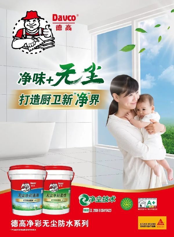就拿防水材料来说,德高K11净彩无尘组合,就是很好的选择。一刚一柔,除了持久防水外,均应用了净尘技术,大幅度降低扬尘的产生,更好地保护工人师傅及业主的健康。
