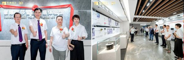 广东睿同科技产业控股有限公司董事长张常华先生、运营总裁郑少映女士与蒙娜丽莎集团股份有限公司董事、副总裁邓啟棠先生等高管、特邀嘉宾,共同为蒙娜丽莎智能家居体验馆揭幕。