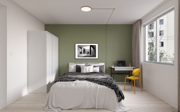 卧室作为合租产品中最重要的个人空间,在“友家7.0”中提供了5种简约艺术化的设计风格。通过低饱和色彩的搭配组合、包豪斯风格书桌以及极具构成感的灯线,呈现简约但具有艺术先锋感的摩登空间设计。在充满个性化设计的同时,又保持了空间的整体统一性。