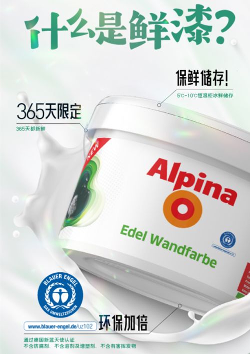 鲜漆(Fresh Wall Paint)是指不含防腐剂,不含溶剂及增塑剂,不含有害挥发物的墙面漆。因鲜漆通过了德国新蓝天使认证,严格把控VOC及甲醛的含量,严控半挥发有机物SVOC的含量,同时对产品的原材料进行严格的审核,严控防腐剂的含量。鲜漆常温下仅可保存365天,但产品更适宜于低温储存,低温状态下能够对细菌的生长繁殖起到抑制作用,其最佳储存温度为5~10℃,能更好的保持产品的新鲜度。