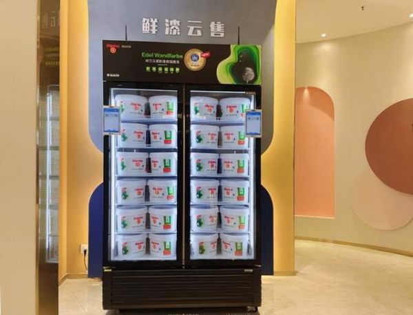 鲜漆采用高科技恒温柜进行销售,开辟了通过物联网实现人脸扫描自助下单的新零售新模式。桶装鲜漆具有新鲜环保、施工性能最优等特点,解决了常规墙面漆需要依靠防腐剂才能保持产品性能的痛点,使墙面漆不易变质,且较好地保留了墙面漆的优点。由于这种墙面漆多数以存放恒温柜进行零售,故可通过云端调控其储存温度等状态,实时观察其品质,该项目被称为“鲜漆云售”。