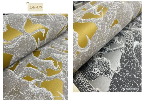 创新的将亮光和哑光完美结合,带有金属质感的基底与面层叠加的亚麻纹理相互映衬,使得这些动物元素在视觉上具有超强的三维立体效果。