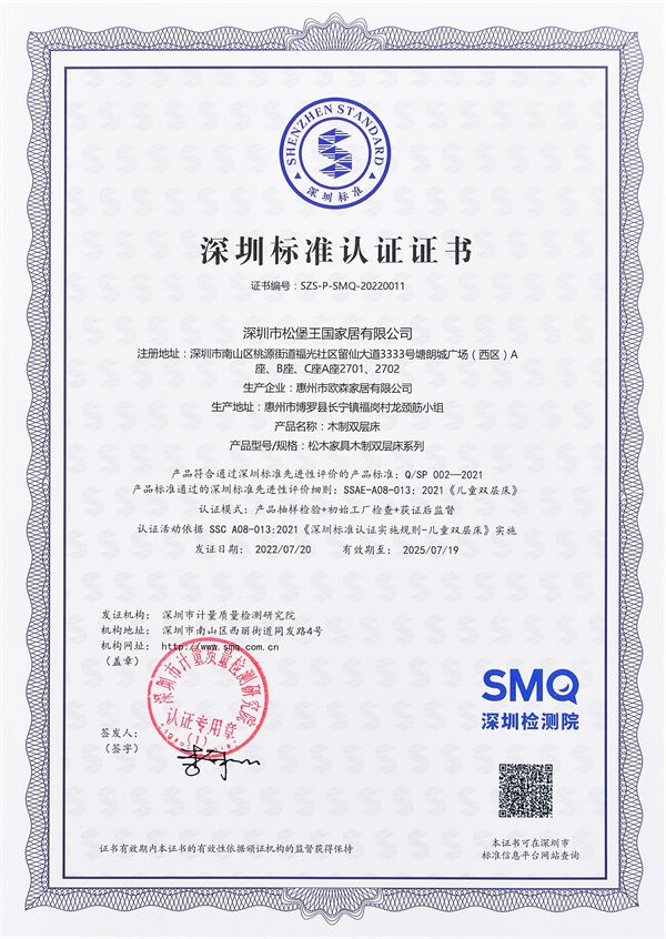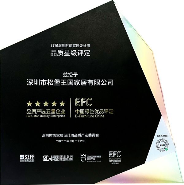 松堡王国作为儿童家居领域头部企业,有着20多年儿童家具研发设计、生产制造、工艺系统经验,连续6年获得“深圳标准”的儿童家具企业,此外,在2022年第37届深圳时尚家居设计周上松堡王国荣膺“品质严选五星企业”+“中国绿色优品评定”证书,这既是对松堡王国20多年发展历程的肯定,也是对未来孩子绿色健康成长空间的探索与期许。
