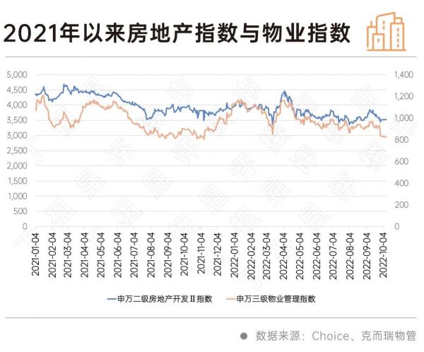 在对比了2021年以来房地产指数与物业指数后,我们发现,物业管理与房地产指数走势高度相关。